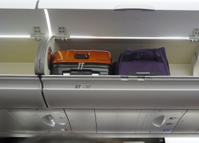 [メモ] 飛行機によって荷物収納のサイズが異なることがあり、例えば国内線の小型機の場合は厳しい場合もあり。ただ小型機の場合、収納はサイドより中央のほうが広いことがありました。入らないときはトライ。必ずしも自分の席の上に入れなくてはいけない訳ではありません。