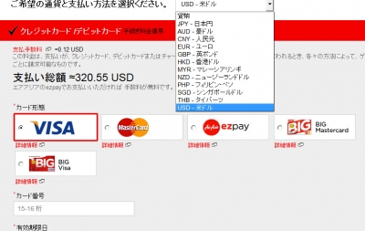 ↓US$にすると支払い手数料は0.12US$になるが、合計は320.55US$。