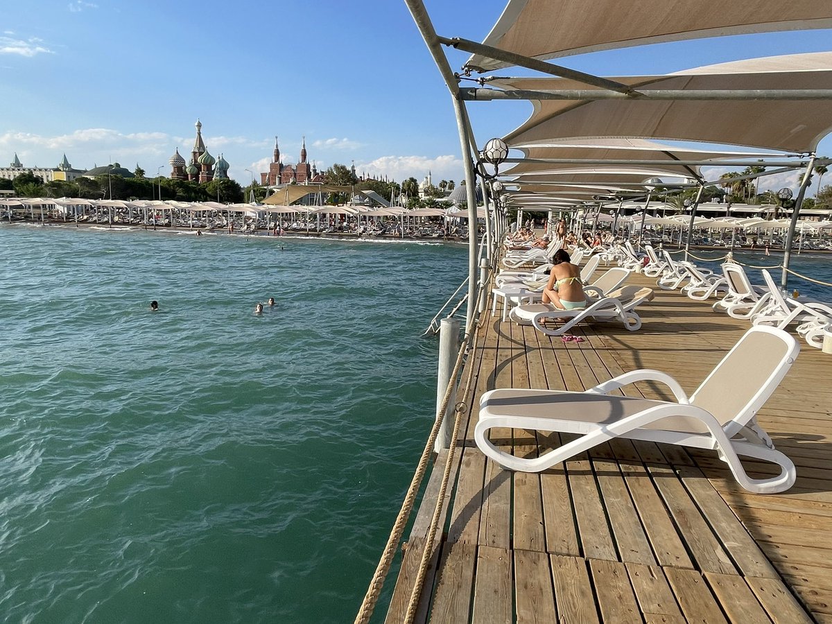 隣り合うリゾートごとに競うようにデッキを伸ばしているけど、ここが1番長いかも。 なんかサソリ型みたいなとこも #アンタルヤ https://t.co/anRforIAuC