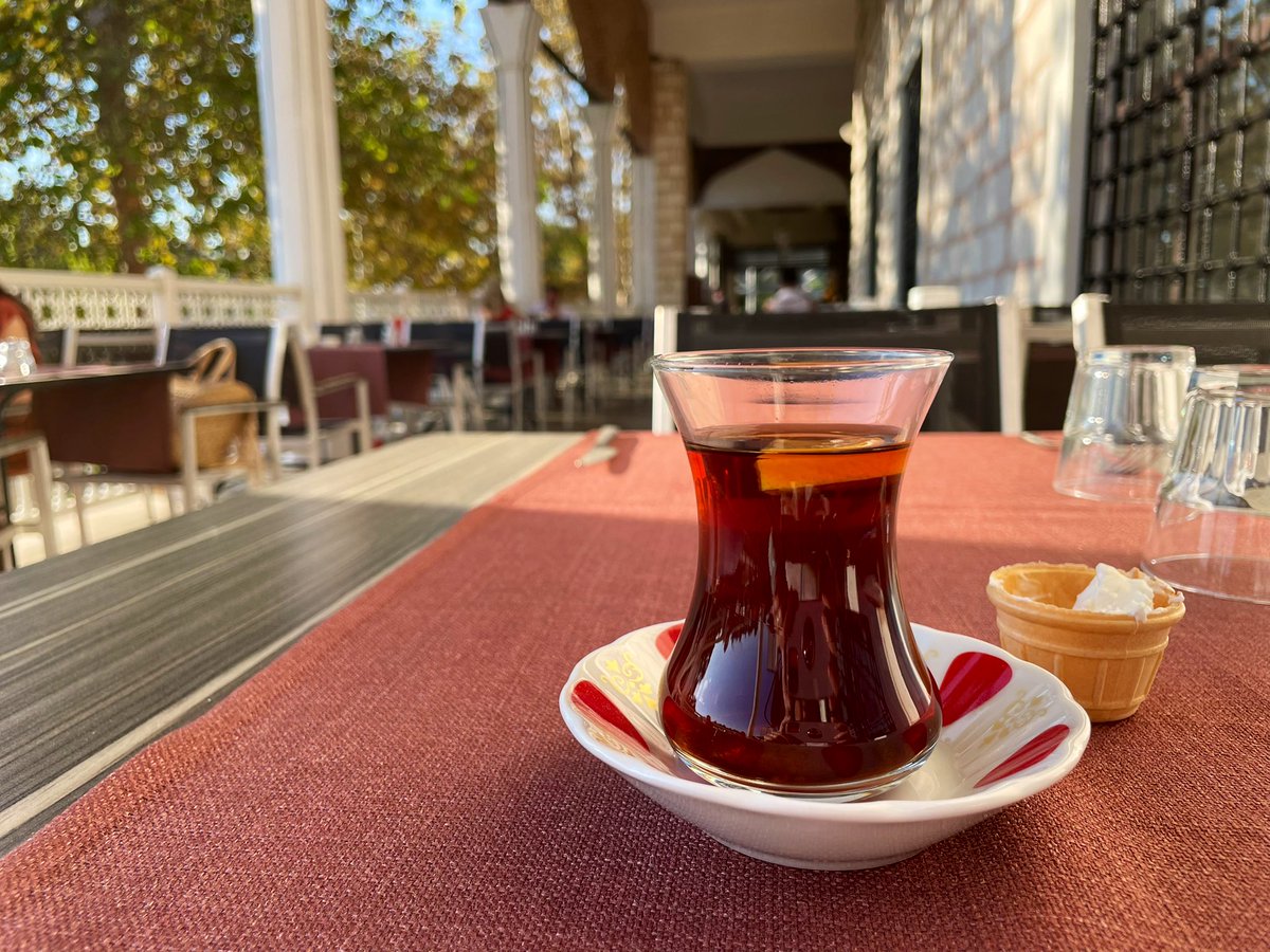オープンテラスで食後のチャイ (*´?`*) そよぐ風が心地いい 太陽が昇るとともに気温がぐんぐんあがってるのが感じられ #アンタルヤ #トルコ https://t.co/4TmPXs6bEu