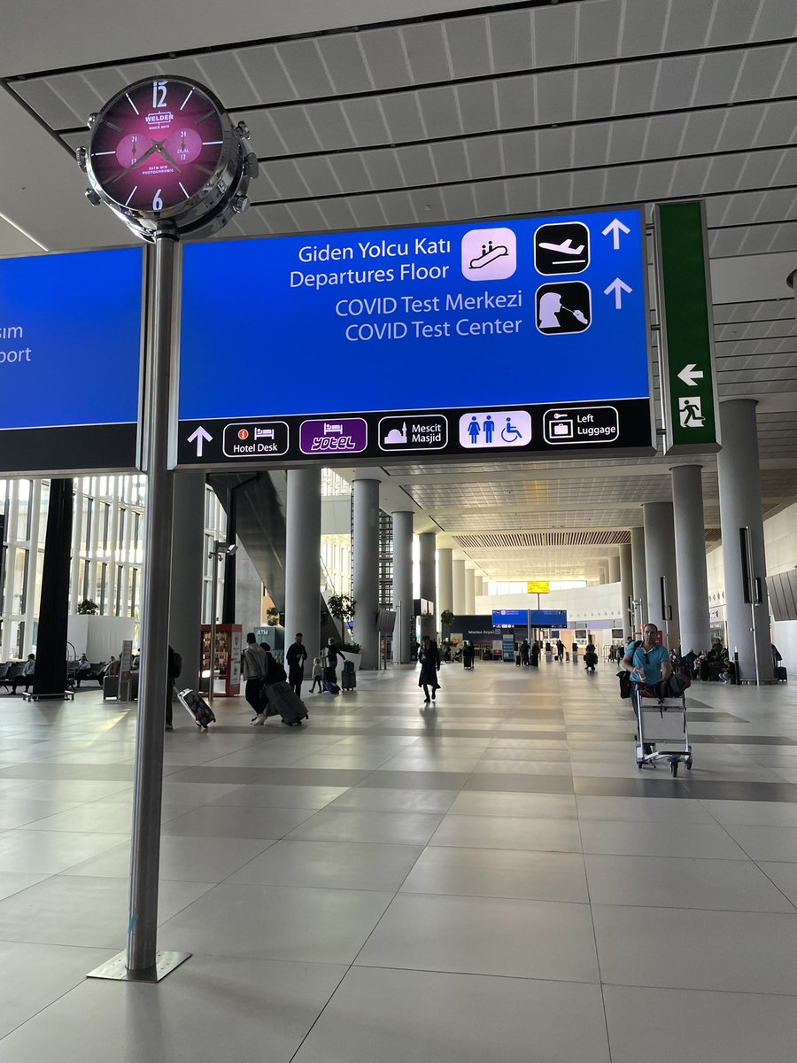 カウンターに到着した時はまだオープンしてなくて。通常レーンは長蛇の列、WEBチェックイン済みレーンはガラガラ。Webチェックインってやっぱあまりみなさんやらないものなのかな。 さっき見かけたコロナ検査の案内看板 #イスタンブール https://t.co/aLnXAeBRU9