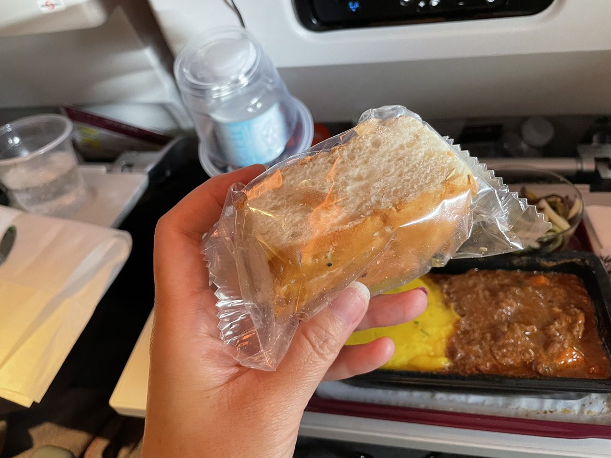 カタール航空ドーハ行きはマスク必須みたい?ない人には配ってる。 久しぶりに付ける。