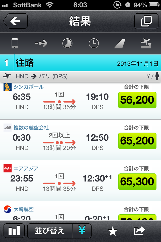 このシンガポール早朝便は、ちょっと前まで56200円(燃油込み)で販売されておりました。