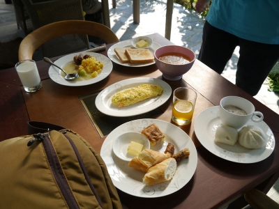 出発は9時なので、その前に朝食です。田園風景をのぞむネイチャーなレストランで気持ちの良いモーニングタイム。