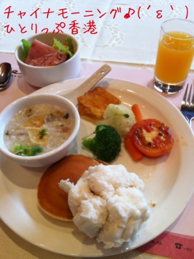夕ごはんは選択式のコースメニューにしたのだけどさ、さっきアップした海鮮中華&ご飯がメインで、その他にスープとサラダとパンとコーヒーで148HK$。・・・ご飯にパンΣ(・□・;)?!機内食じゃあるまいし
