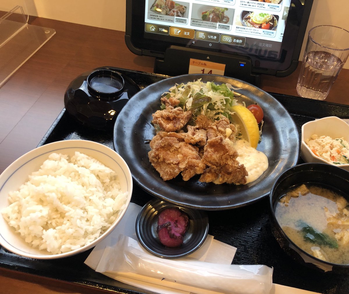 夕ごはんは博多1番鳥からあげ南蛮定食~♪ この船乗って19時間で初めてまともに食べられました。 レストランはタッチパネル式でお会計もセルフレジ。 #東京九州フェリー https://t.co/xJdKIXOAAE
