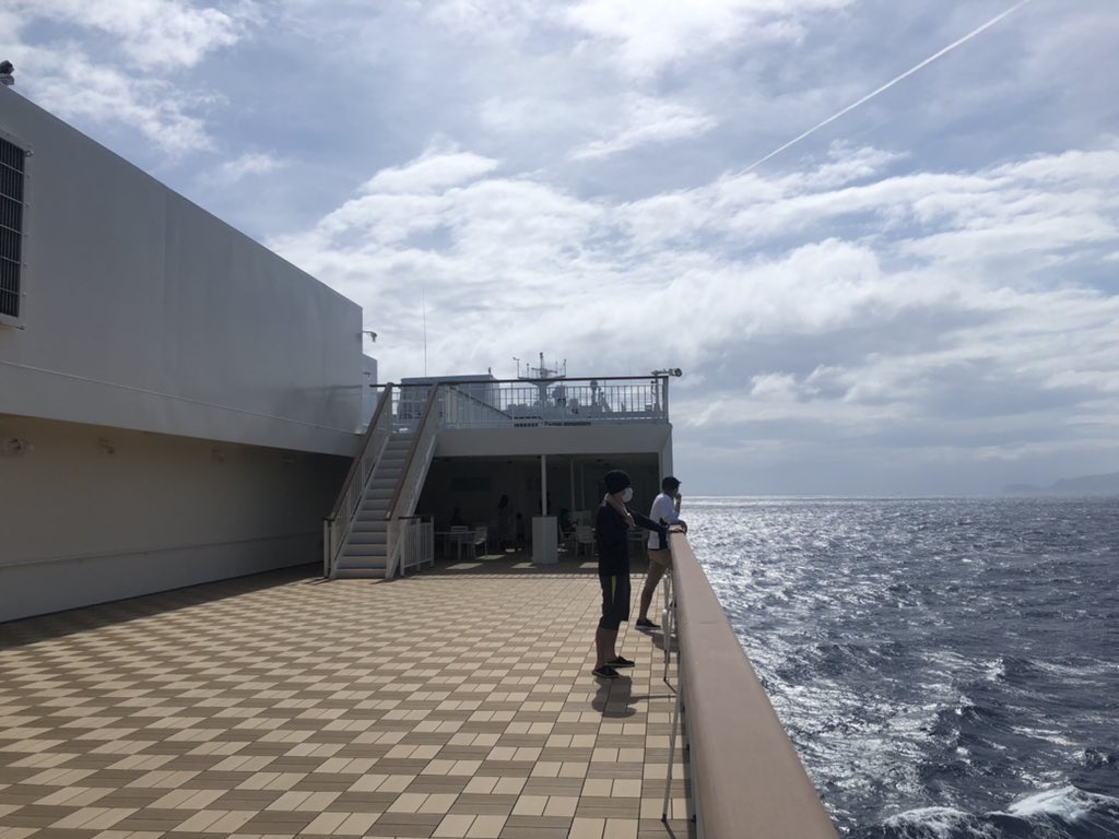 心配していた台風の影響はなく海は穏やか。揺れは和らぎアタクシも復活 定刻通り新門司港につきそうです。 船旅は晴天が似合う #東京九州フェリー https://t.co/6zMIYWswGa