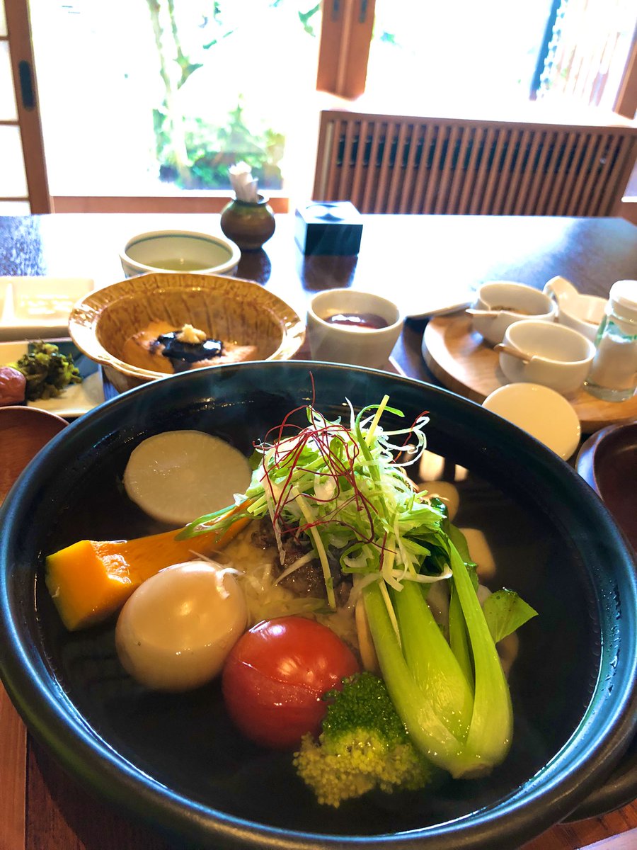 朝ごはん?? 温泉蒸し野菜のお雑炊ですって たっぷりヘルシーおいしー #湯布院 #温泉宿 https://t.co/fGvTd25lRd