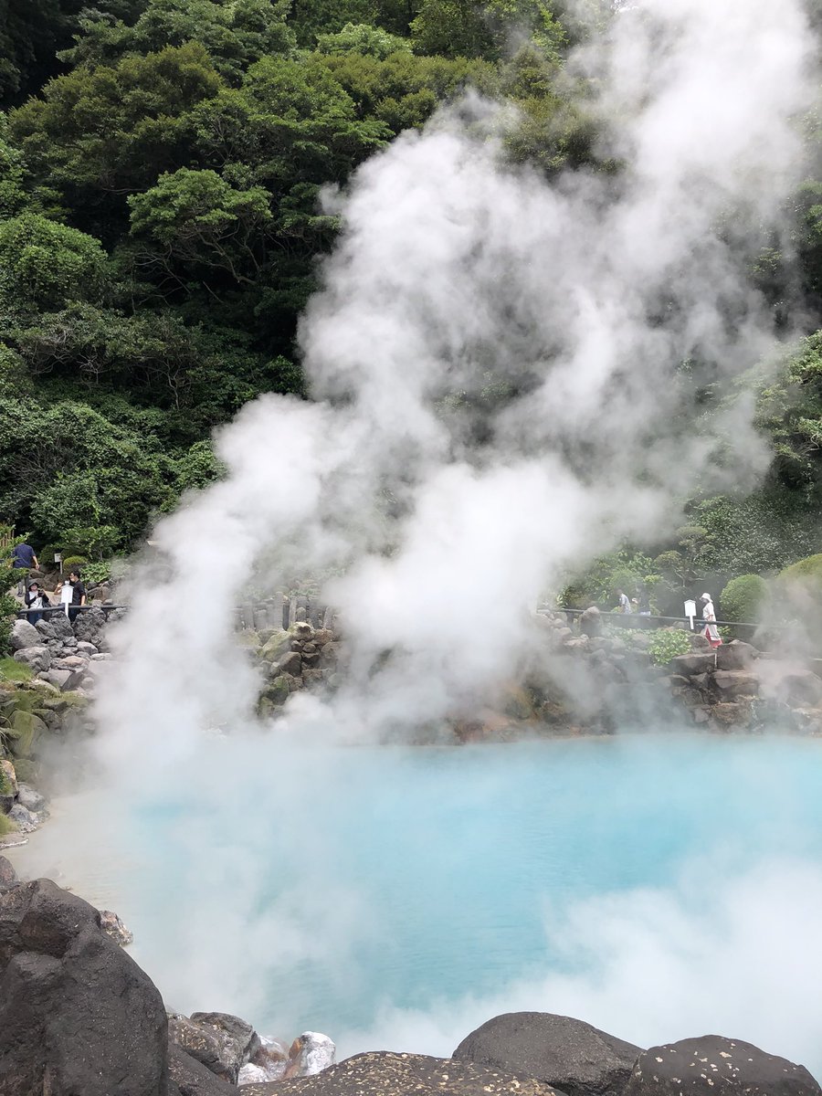 温泉のキレイな青色は、なんとシリカゲルなんですって。あの乾燥剤の。 海地獄はモクモクがっぱないー https://t.co/a9EPxYT4ya