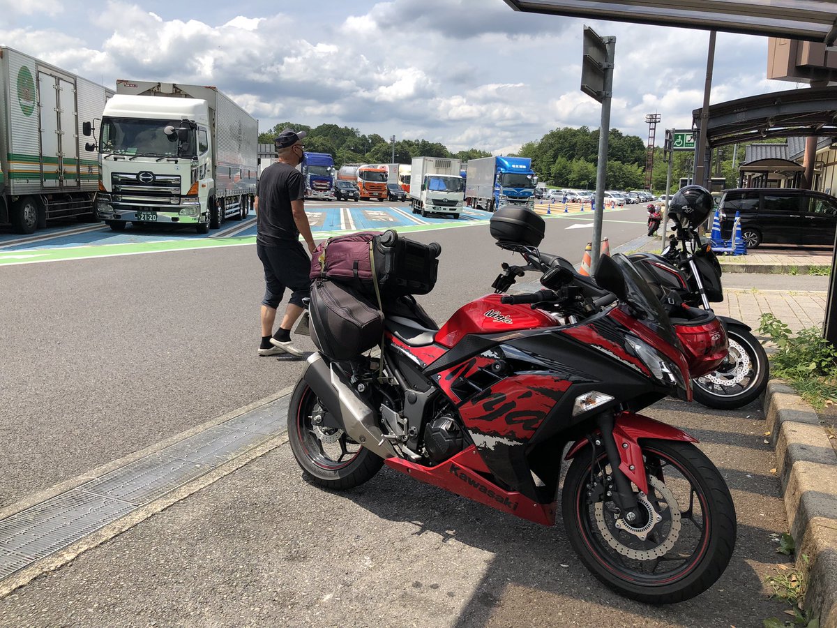 吹出SAってとこなう。 神戸港ついて下船していっきにここまで走ってきました。 1℃でも涼しいうちに距離を稼ぎたい #神戸から東京へツーリング https://t.co/mVFivqkW1O