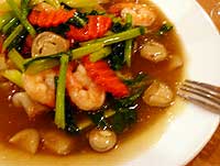 味付けや野菜、えびはおいしかったのだけど、野菜の下に得体の知れない何かが入っていました。。。