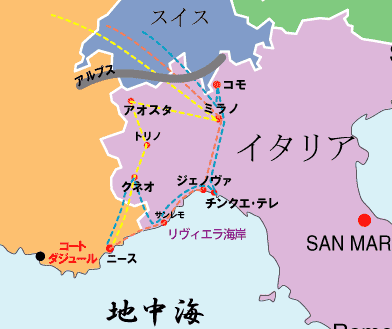 ニース~ミラノ間の約2日間の過ごし方が未確定なのですが、ここをつめてゆきます!