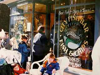 街角にはフィッシュ&チップス専門店などもあり、いつも賑わっている。