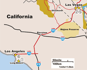 ロスからベガスまでは車で約5時間。飛行機なら1時間の距離ですが大地を車で走ることによりアメリカの広さを実感できます。