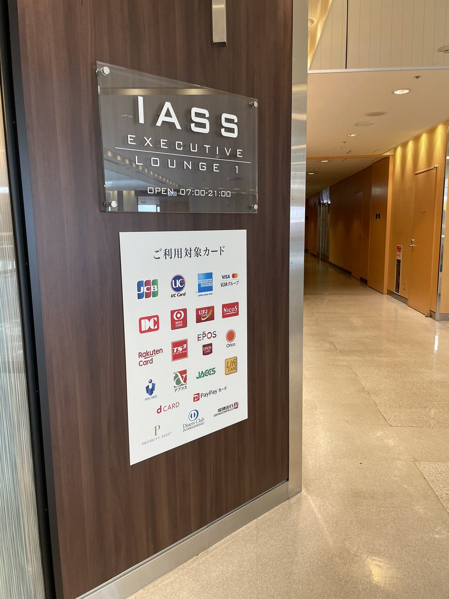 カードラウンジIASS Executive Lounge で一休み。出国手続き前のエリアにあるのが便利。缶ビールが1本無料も良いけど、飛行機で酔うので飲めん?