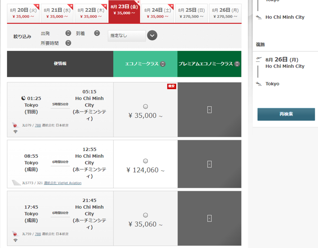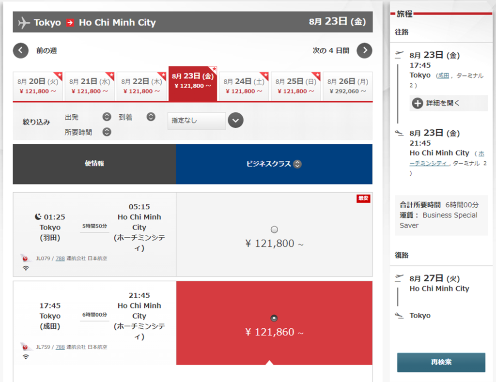 以上、JALマイレージ特典航空券ビジネスクラス成田~ホーチミン発券レポートでした。