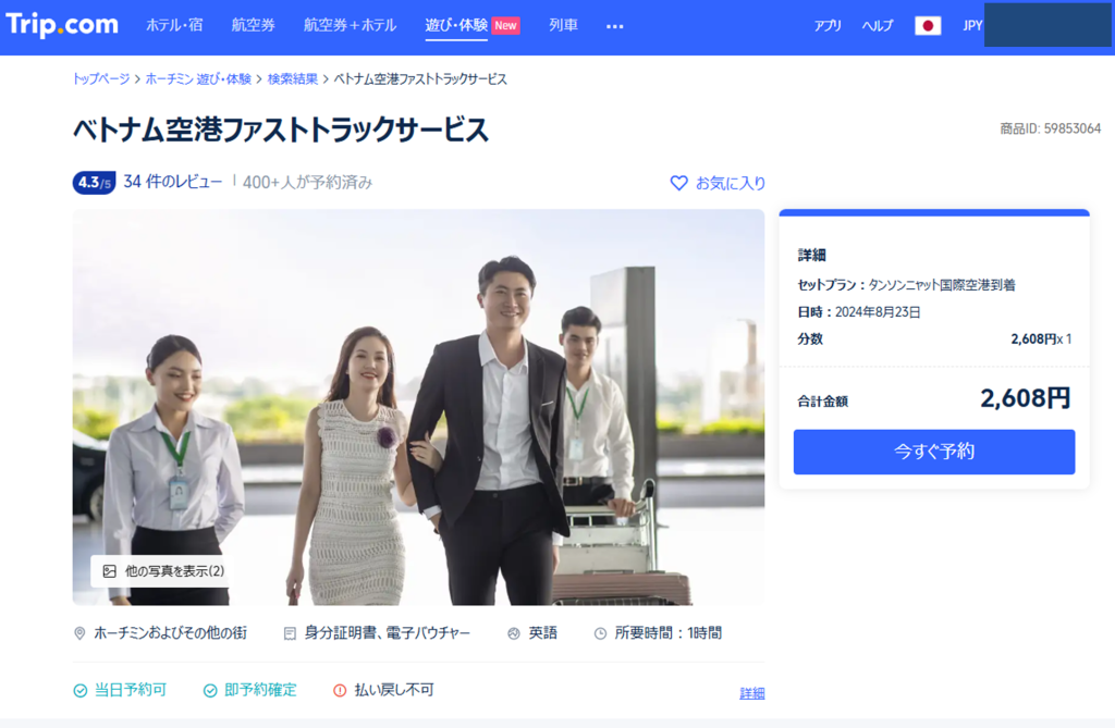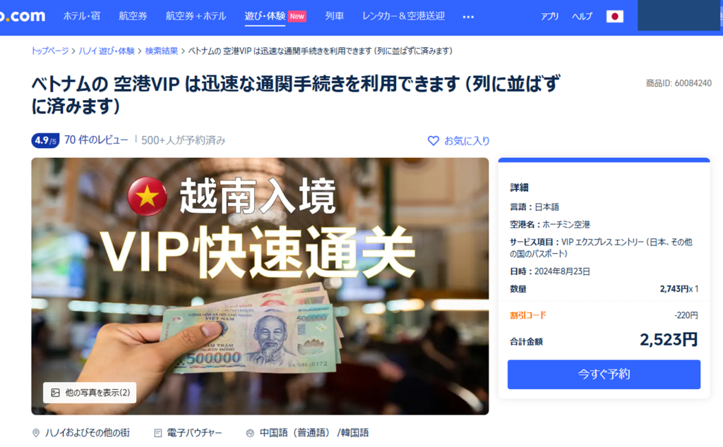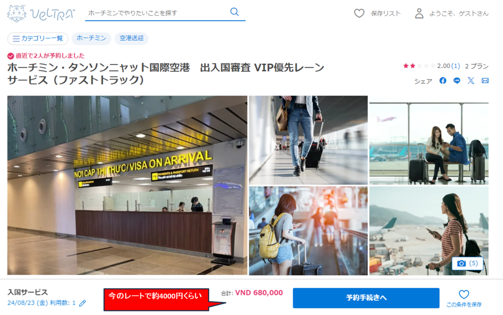 やはりお金。空港が提供しているサービスというよりも、ベトナム国内の企業が要人を迎えるときなどに利用するサービスらしい。なので申込先はそのサービスを提供している事業者になり、いわゆる「オプショナルサービス」として販売されている。これがお値段がピンキリで、だいたい4000円前後から高いとこだと1万円以上。