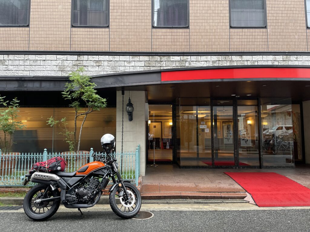 ホテルまでバイクで20分