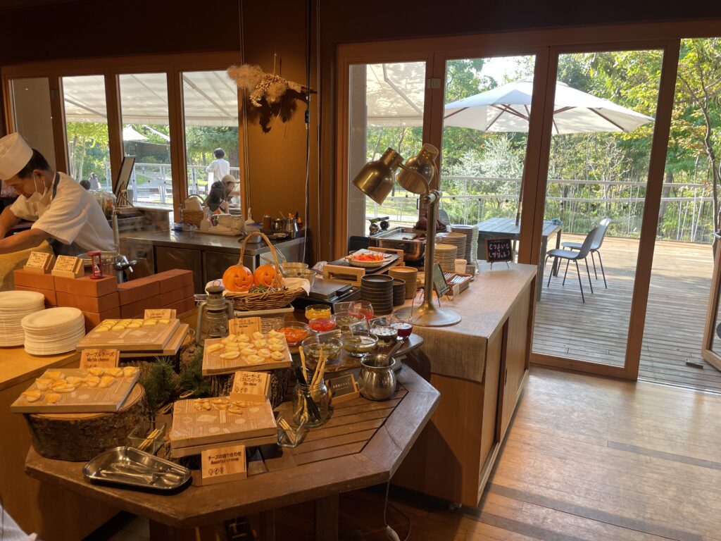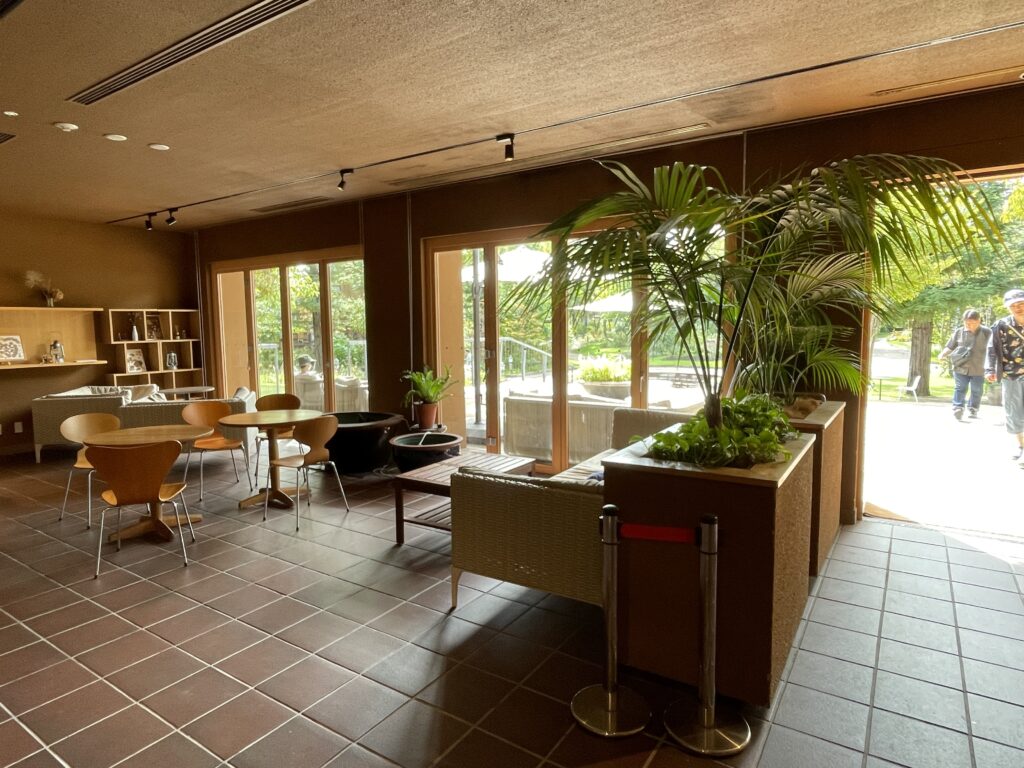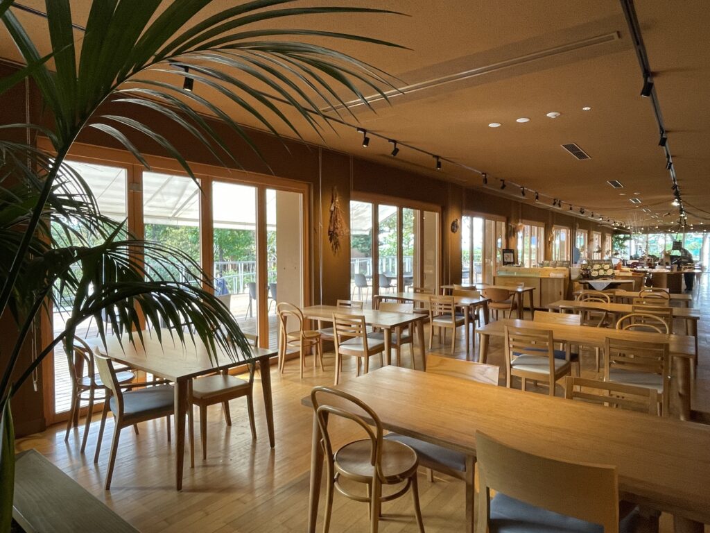 緑のガーデンを前にした開放的なテラスレストラン。