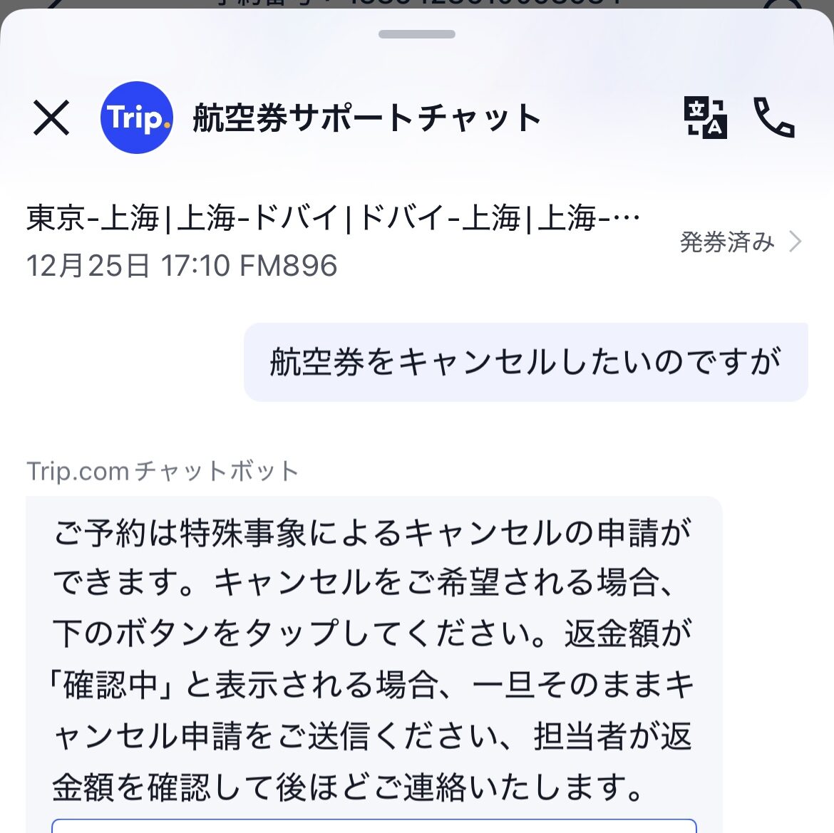 これには感心した。返金は中国発の中国国民だけが対象だと思っていた。