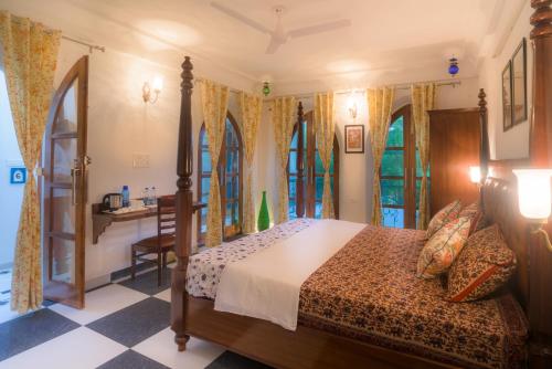 ペールイエローの壁が可愛い宮殿のようなお宿。お部屋もインテリアも可愛くて、極鮮色をところどころにとりいれているのがインドっぽい。しかもリーズナブル。デラックス クイーンスイートが約8000円程度だ。
