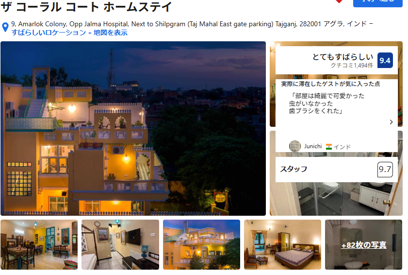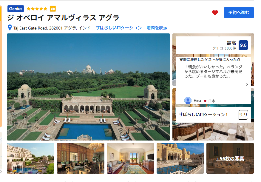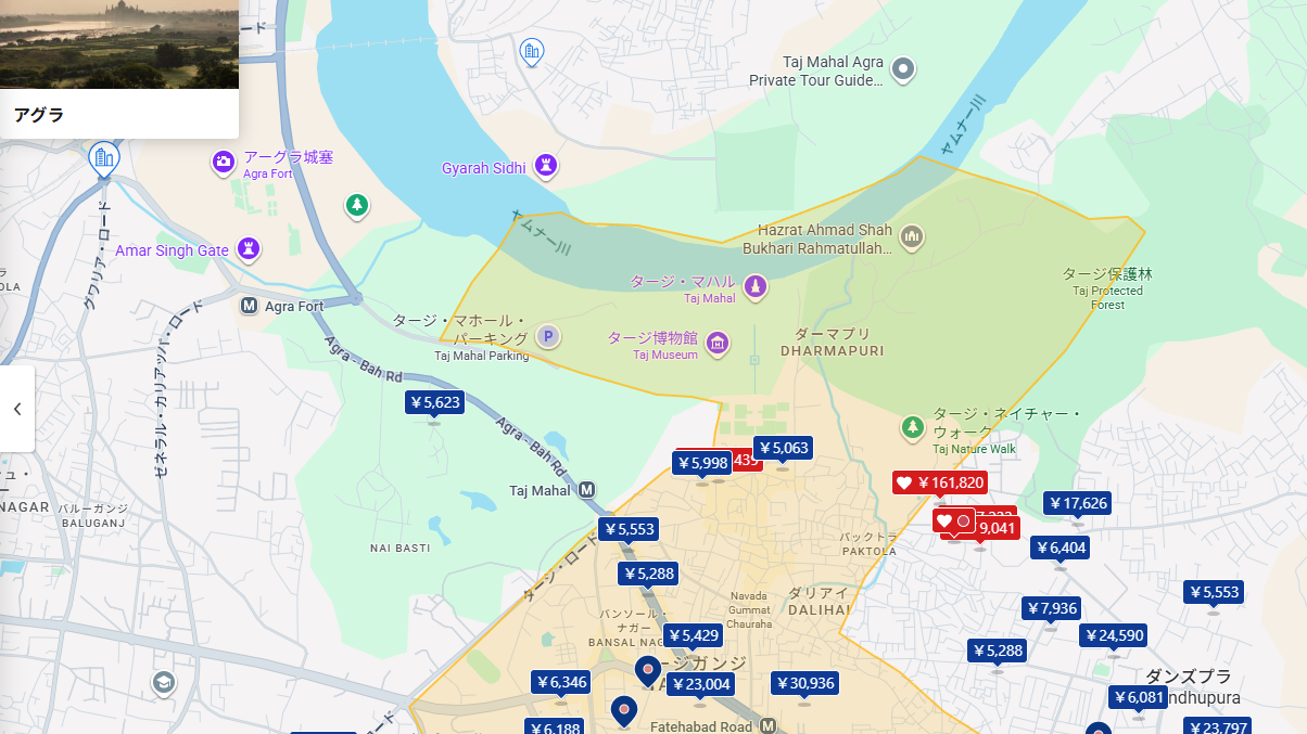 お金が潤沢にあればぜひ泊まりたいが、残念ながらそこまでブルジョワではない。GoogleMap上には既にピンが立っていて、おそらく昔のわたしがいつかタージマハルに行くなら泊まりたいと思って立てたと思われる。ごめん昔の私。無理そう。