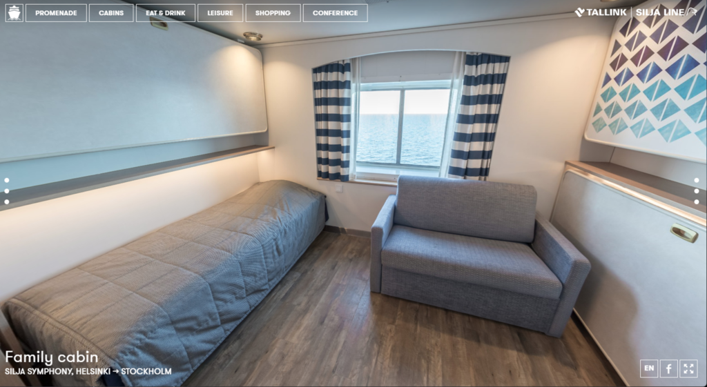 ヘルシンキ⇄タリンは2時間足らずの航海なのであっという間ですが、ヘルシンキ/タリンから、1泊二日かけてストックホルムへ行く便もでています。今回はこれに乗ります!