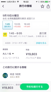 を利用、最安値がバニラエアだった。スマホとネット環境だけでで購入手続きまで簡単に完了できる。バニラエアは台北空港にカウンターもあったのだが、そこでチケットの購入手続きはできないということでその場でスマホで購入した。