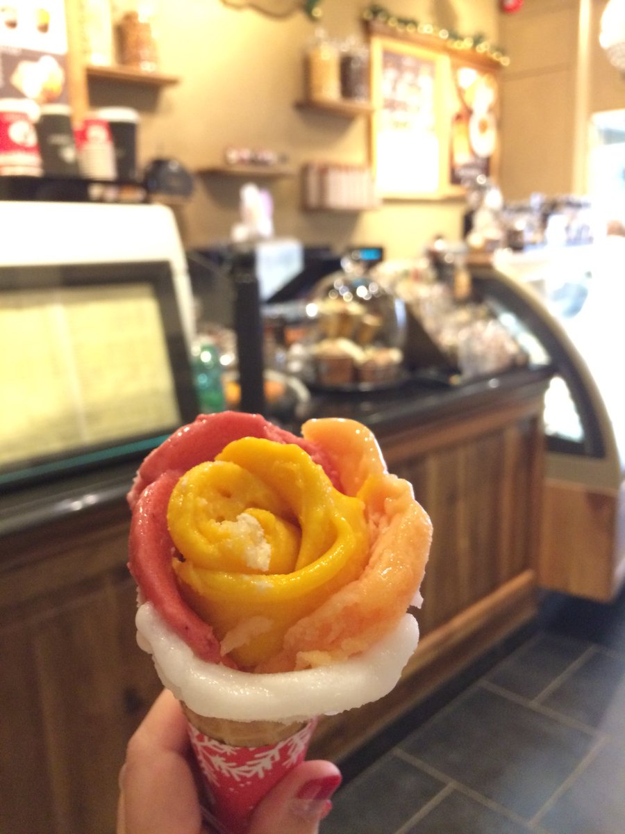 食べたい味より仕上がりの色で選ぶとインスタ映えするね。これはマンゴー、レモン、ヨーグルト、ストロベリー、グレープフルーツのミックス。いろいろちょっとづつ食べられるのも良いね https://t.co/0A9KkJ5Lg6