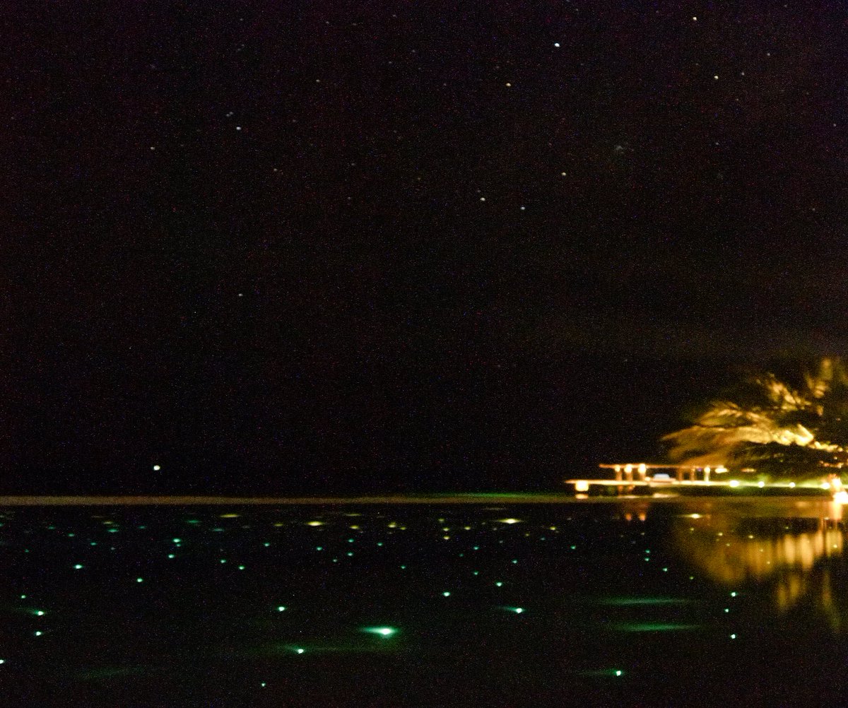ビーチのような大きなインフィニティプールは、夜になるとポツポツと灯りまるで星空のようになった。見上げればリアルの満天の星。宇宙空間みたい https://t.co/jJxPhnCJxn