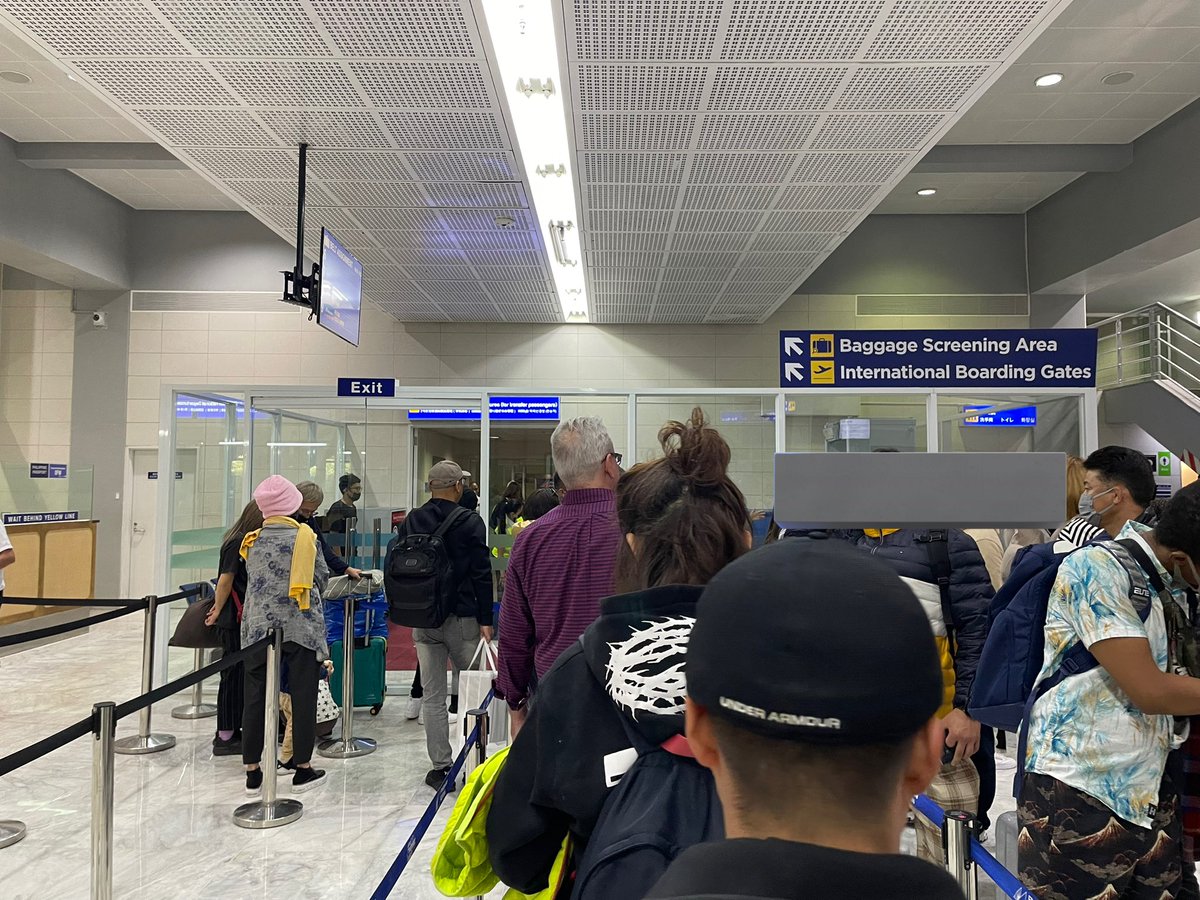 飛行機を降りたところで、東京行き旅客は集められ、ワクチンの確認をされてパスポートとチケットを持っていかれる。