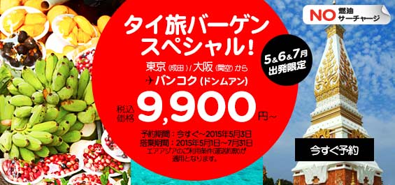 RT @airasiajp: 【成田⇒バンコク 片道9900円(税込)~ まもなく終了!】セール本日最終日☆直行便が驚きのプライスで!ちょっとタイまで、足を伸ばしてみませんか?