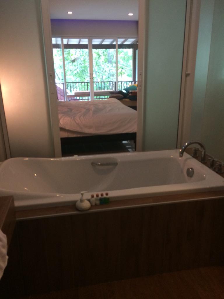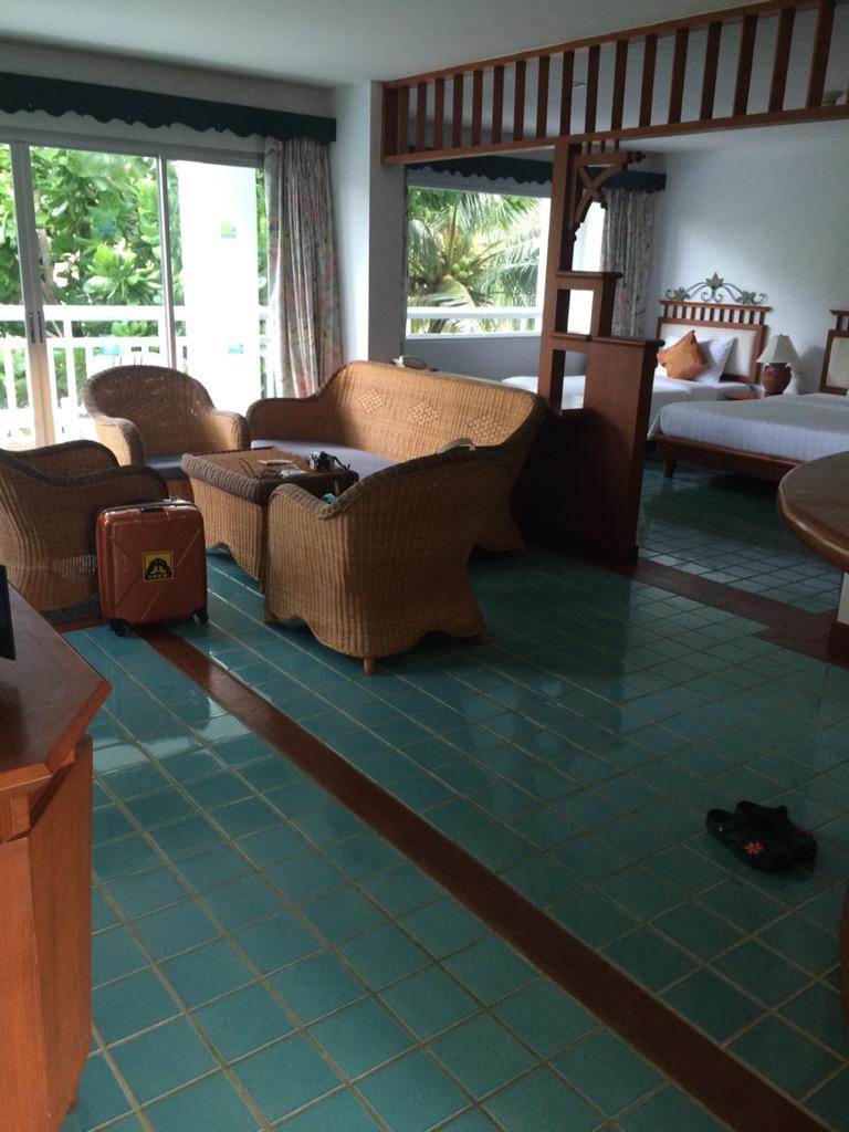 ベッドルームにリビングルーム、カウンターバーまであるだよ。二階角部屋で2面採光、テラスからはラグーン全体とクラビの絶壁の風景が一望((((;゚Д゚)))))))何がどうしてこうなった??? http://t.co/FjZjLekZKl