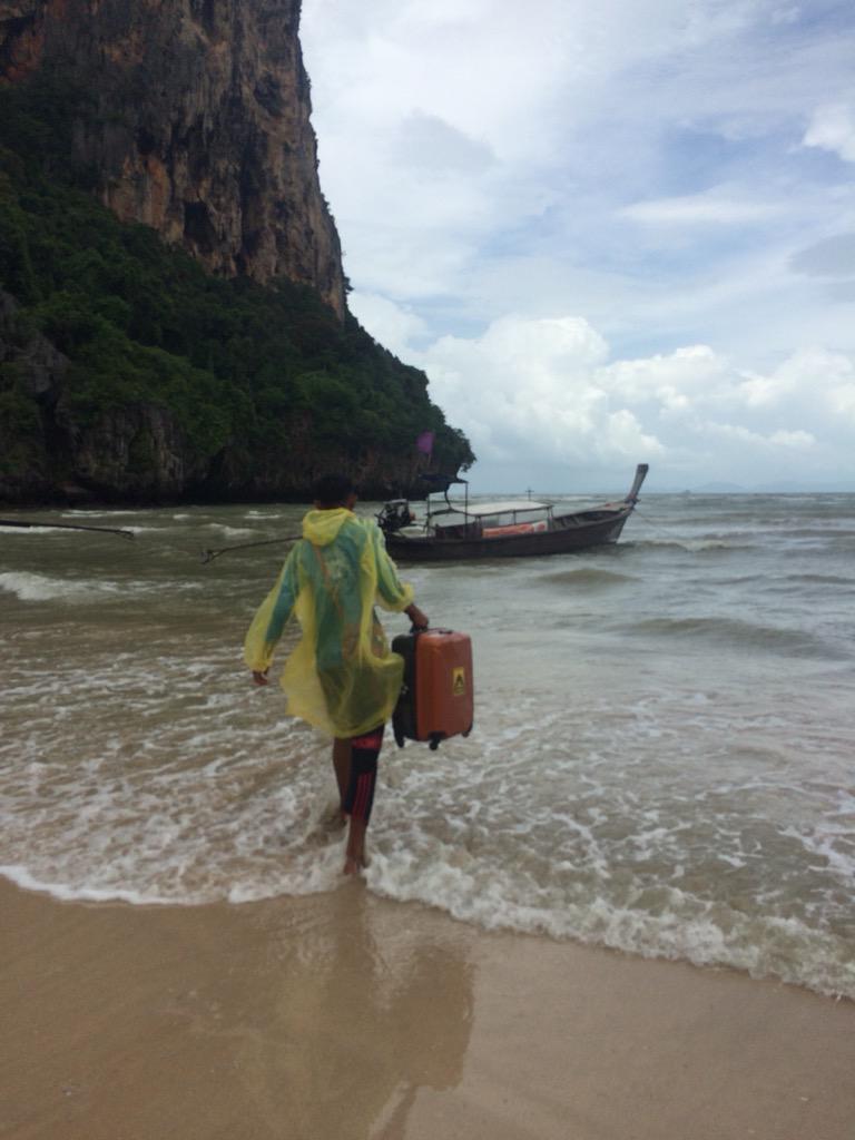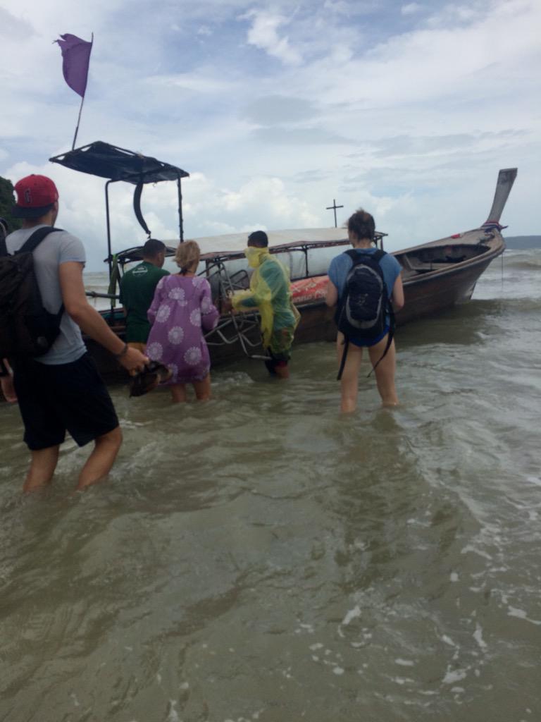 でもビーチをみると船は来てる。直接交渉してみたら船を出してくれた。ほかもあれよあれよと10人集まり100バーツで済んじゃった。出航です!荷物運んでくれたありがとん http://t.co/6AliuhZwfH