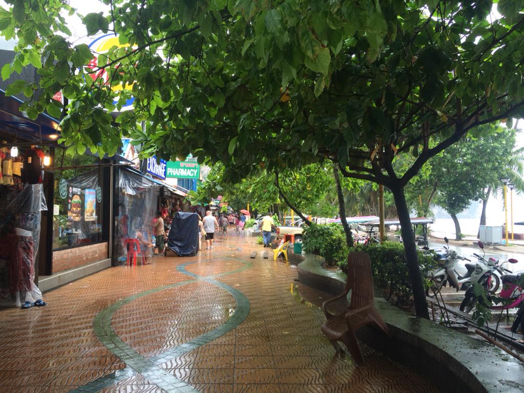 クラビのアオナンビーチ沿いをホテルに向かってテクテク。道はきれいに舗装されお店が立ち並び活気があります(^_^) http://t.co/Rpl8h5iWea