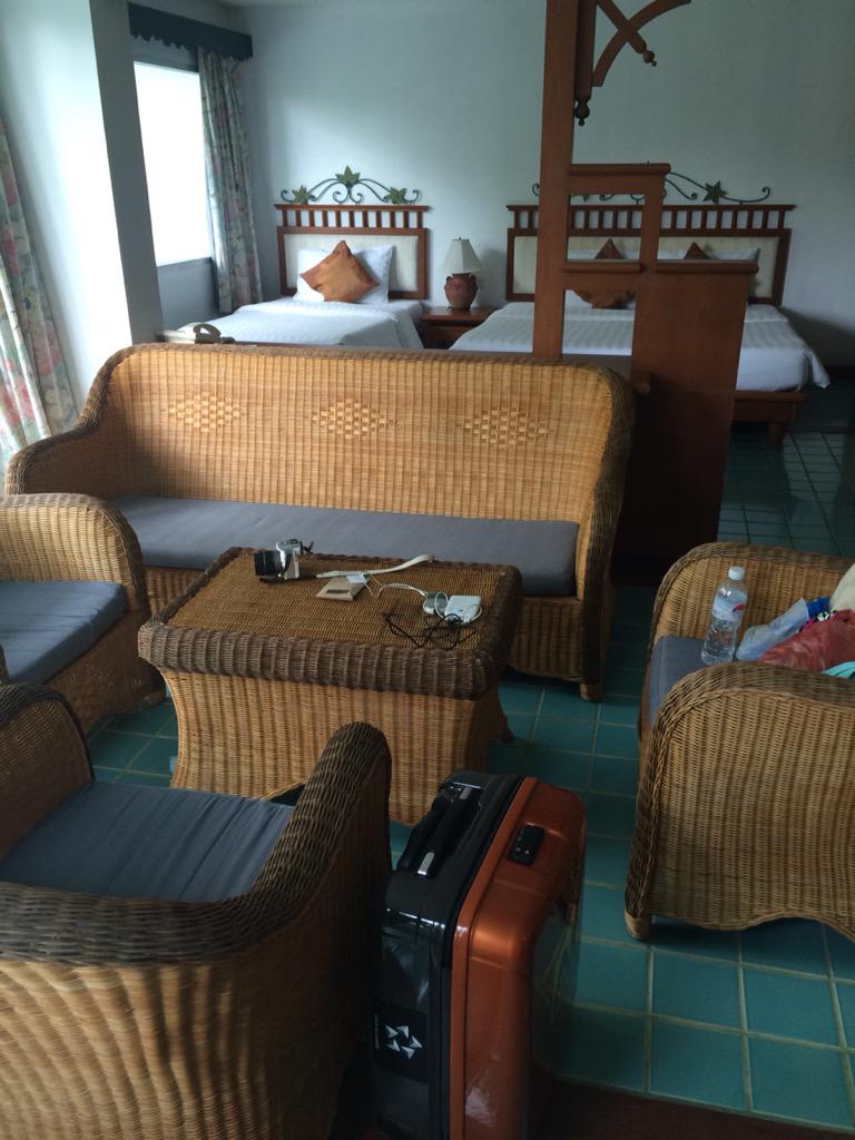 でもコテージはちょと高いので私は安いビルディングタイプのスタンダードルームです。部屋に入れるのは3時(あと1.5h)とのこと http://t.co/Mo2Haoa72b
