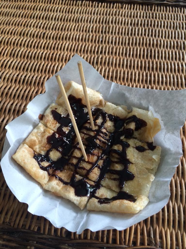と、とりあえず屋台で買って持って帰ってきたバナナパンケーキを食べて落ち着こう http://t.co/CK8YYRPcRi